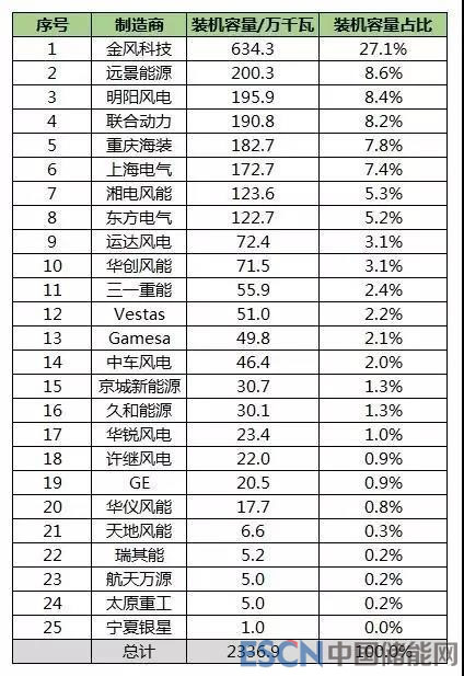 三、風(fēng)電機(jī)組制造商裝機(jī)情況