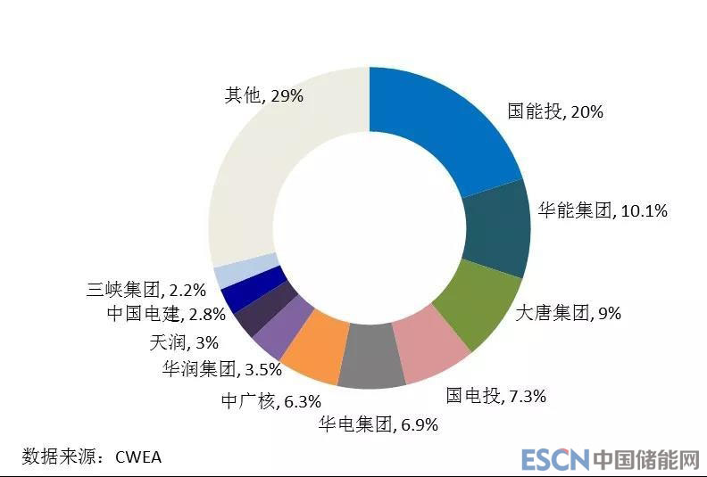 圖13 2017年中國風(fēng)電開發(fā)企業(yè)新增裝機(jī)市場份額
