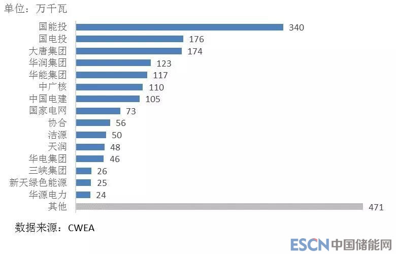 圖12 2017年中國風(fēng)電開發(fā)企業(yè)新增裝機(jī)容量