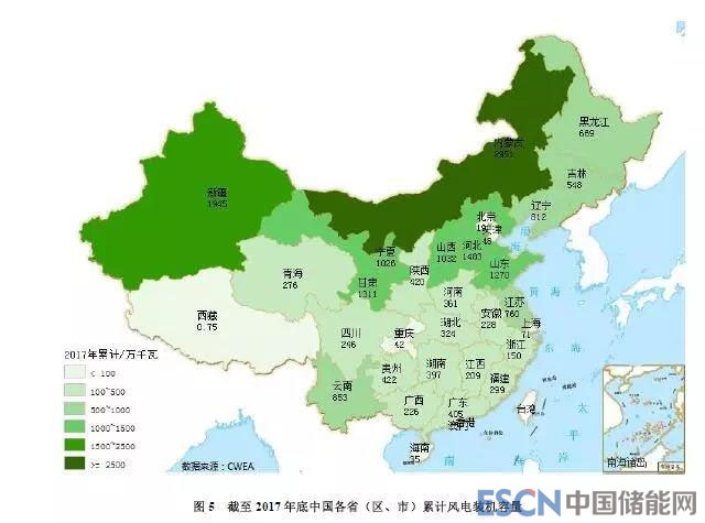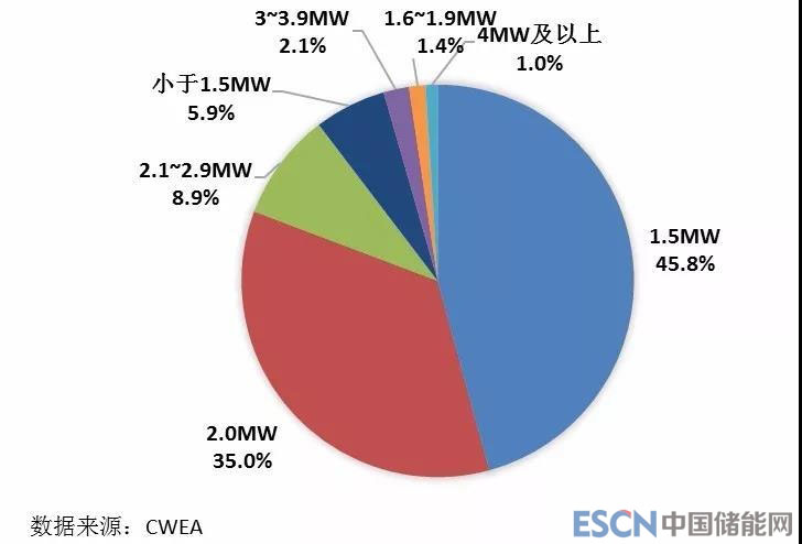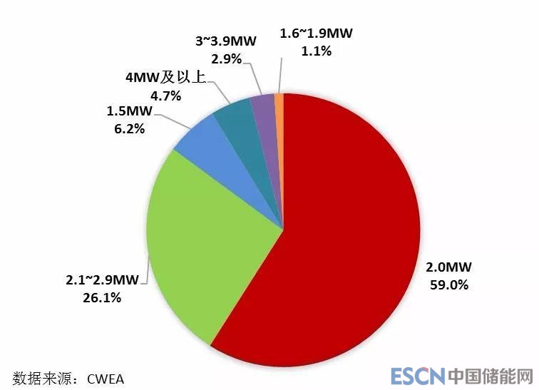 圖11 截至2017年底中國不同功率風(fēng)電機(jī)組累計裝機(jī)容量比例
