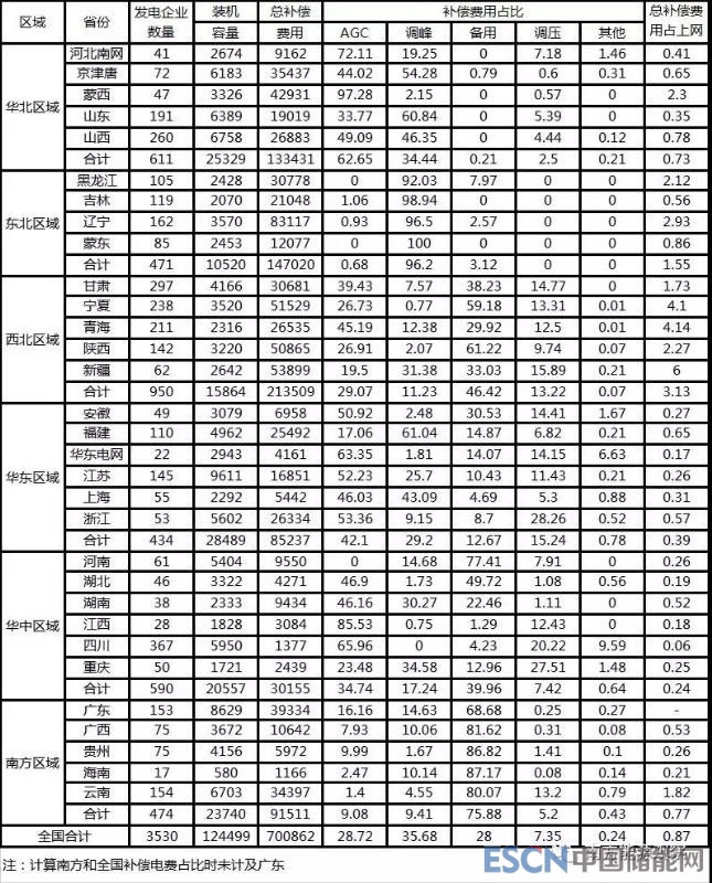 2018年上半年,全國(guó)除西藏外參與電力輔助服務(wù)補(bǔ)償?shù)陌l(fā)電企業(yè)共3530家,裝機(jī)容量共12.45億千瓦,補(bǔ)償費(fèi)用共70.09億元,占上網(wǎng)電費(fèi)總額的0.87%(詳見附件)。