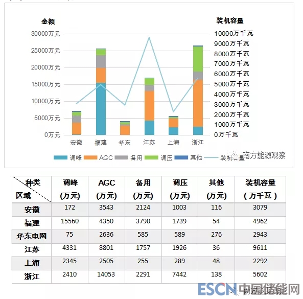 圖10華東區(qū)域分省(市、區(qū)域)電力輔助服務(wù)補(bǔ)償分項(xiàng)費(fèi)用情況