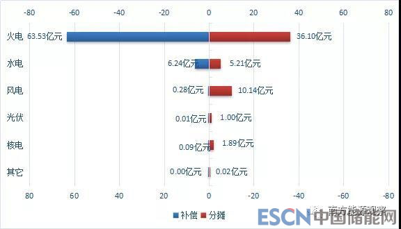 從能源類型的角度來(lái)看,電力輔助服務(wù)補(bǔ)償費(fèi)用的補(bǔ)償與分?jǐn)傎M(fèi)用對(duì)比如下。(見圖5)。