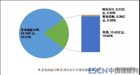 從電力輔助服務(wù)補(bǔ)償費(fèi)用來(lái)源來(lái)看,主要來(lái)自發(fā)電機(jī)組分?jǐn)傎M(fèi)用,合計(jì)54.34億元,占比為79.57%。其他還有,跨省區(qū)(網(wǎng)外)輔助服務(wù)補(bǔ)償分?jǐn)傎M(fèi)用合計(jì)0.27億元,新機(jī)差額資金0.26億元,考核等其他費(fèi)用13.42億元,無(wú)分?jǐn)倻p免費(fèi)用(見圖4)。
