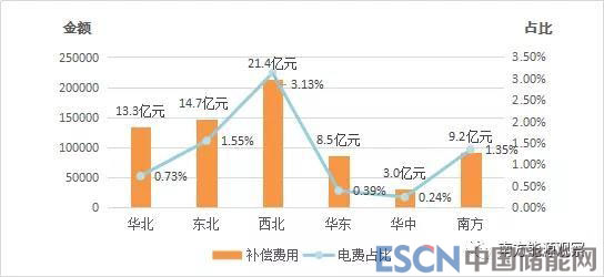注:南方區(qū)域計(jì)算補(bǔ)償電費(fèi)占比時(shí)未計(jì)及廣東