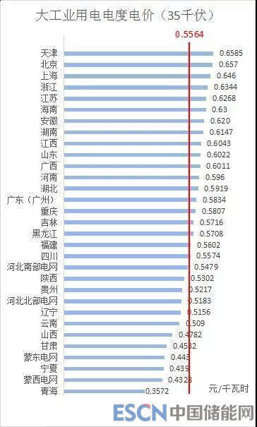 2、35千伏電壓等級(jí)下,全國(guó)平均電價(jià)約為0.5564元/千瓦時(shí),其中,天津最高為0.6585元/千瓦時(shí),青海最低為0.3572元/千瓦時(shí)。