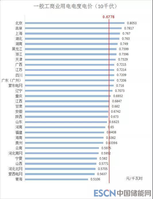 2、10千伏電壓等級(jí)下,全國(guó)平均電價(jià)約為0.6778元/千瓦時(shí),其中,北京最高為0.8053元/千瓦時(shí),青海最低為0.5106元/千瓦時(shí)。