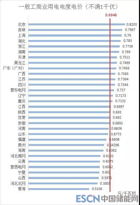 1、不滿1千伏電壓等級(jí)下,全國(guó)平均電價(jià)約為0.6948 元/千瓦時(shí),其中,北京最高為0.8203元/千瓦時(shí),青海最低為0.5156元/千瓦時(shí)。