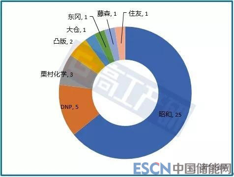 中國(guó)鋁塑膜代理商,目前大都以代理進(jìn)口鋁塑膜為主。據(jù)高工產(chǎn)研鋰電研究所(GGII)統(tǒng)計(jì),昭和鋁塑膜的代理商數(shù)量最多有25家,其次是DNP有5家,栗村化學(xué)4家,凸版2家。其他廠商均為1家。 昭和和DNP的代理商數(shù)量一共為30家,占全部代理商數(shù)量的77%。