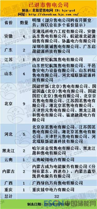 在山東世紀(jì)航凱售電有限公司申請退市之前不久,廣東電力交易中心發(fā)布通知稱,收到深圳市展誠售電有限公司、廣東啟晟能源科技有限公司兩家售電公司退出電力市場的退市申請,這是廣東首例售電公司退出事件。據(jù)了解,這兩家售電公司均為民營售電公司,均成立于2016年,對于兩家售電公司的退出原因,廣東電力交易中心稱均為自愿退出電力市場。在廣東電力交易中心4月16日提供的146家提供保函、合計(jì)金額7.08億元的售電公司名單里,沒有發(fā)現(xiàn)上述兩家售電公司的身影,可見退出電力市場早有計(jì)劃。至此,江蘇、廣東、山東、三大電力消費(fèi)大省均有售電公司退市,其他省份售電公司生存狀態(tài)可見一斑。截止2018年10月,全國退市售電公司情況如下: