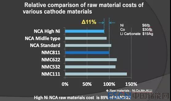 根據(jù)住友金屬的數(shù)據(jù)測算,NCA材料將會比NCM811材料價(jià)格低11%,這讓其在成本上更具競爭力。同時(shí),隨著NCA材料生產(chǎn)工藝的改進(jìn)以及安全性能的提升,未來NCA將會在純電動(dòng)車領(lǐng)域成為主流。