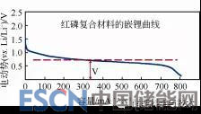 圖8以NCM|石墨電池體系為例,顯示了鋰離子電池充放電過程中正、負極分別對鋰的電勢。紅磷基負極材料的嵌鋰曲線如圖9所示。紅磷復(fù)合負極材料具有比容量高(約1400 mA·h/g)、循環(huán)性能好等優(yōu)點,以三元材料為正極時,其全電池的比能量與石墨負極電池的比能量相當。同時,紅磷復(fù)合負極的嵌鋰驅(qū)動力較大(0.8 V),如圖9所示,遠高于石墨負極的0.12 V。隨著XFC技術(shù)的發(fā)展,紅磷復(fù)合負極材料將被證明是一款非常有前途的負極材料。