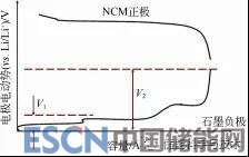 圖8 NCM|石墨鋰離子電池正負極對鋰的電極電勢示意圖