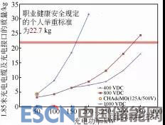 XFC對電動車輛的配套設(shè)備/設(shè)施提出了一系列技術(shù)挑戰(zhàn)(如電纜、高壓電器和連接器等),其中最重要的挑戰(zhàn)是充電樁的類型(如交流、直流,或高壓、低壓)以及與現(xiàn)有設(shè)備/設(shè)施的兼容性,這個問題不僅是個技術(shù)問題,還涉及法規(guī)和標準的統(tǒng)一、以及滿足職業(yè)安全和健康管理等部門的規(guī)定。例如,現(xiàn)有常用充電電壓條件下快速充電的充電槍電纜線會超過15 kg/m,圖6顯示隨著功率水平的增加,布線重量明顯增加,會超過職業(yè)健康安全規(guī)定的個人舉重標準。使用更高的電壓可以顯著降低電纜線規(guī)尺寸,但提高電壓,也會伴隨產(chǎn)生其它問題,例如電池組的絕緣安全性、操作防護等等。當然,XFC模式會改變很多電動車相關(guān)的配套設(shè)備/設(shè)施,這里不一一例舉。就目前電動車產(chǎn)業(yè)的工業(yè)技術(shù)水平,要實現(xiàn)XFC還需攻克下述難題:① 研發(fā)先進材料或進行技術(shù)改進,使電纜具有更好的熱性能和電性能,以減少設(shè)備/設(shè)施熱管理的熱負荷;② 研究XFC的自動化充電樁;③ 研究適用于輕型乘用車的400 kW功率無線傳輸技術(shù)。