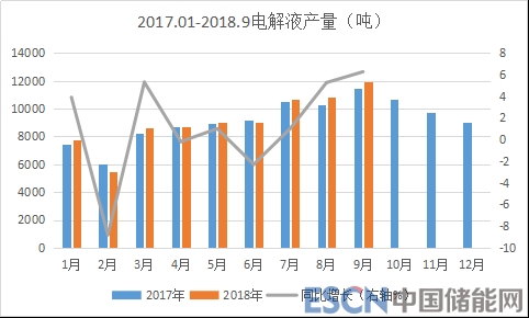 1-9月份電解液統(tǒng)計(jì)產(chǎn)量8.19萬噸,同比增長(zhǎng)1.5%,其中下半年表現(xiàn)明顯強(qiáng)于上半年;