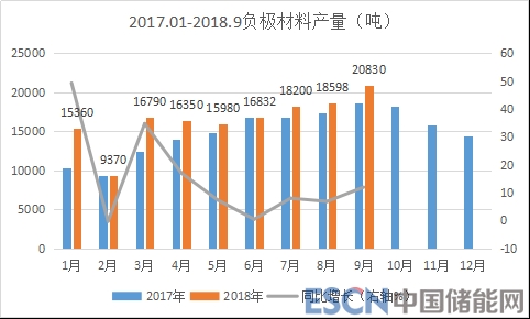1-9月份負(fù)極材料統(tǒng)計(jì)產(chǎn)量14.83萬噸,同比增長(zhǎng)13.6%,需求增長(zhǎng)較為穩(wěn)健;