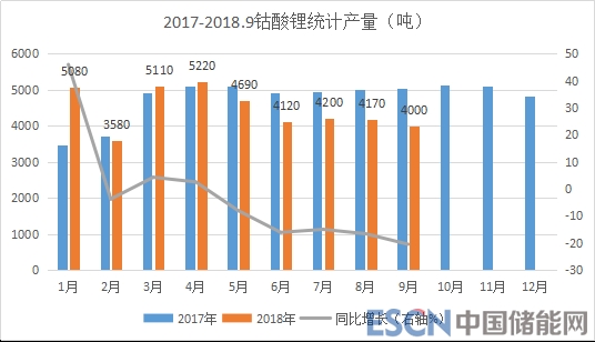 1-9月份鈷酸鋰統(tǒng)計(jì)產(chǎn)量4.02萬噸,同比下滑1.1%,4月份以來產(chǎn)量出現(xiàn)明顯下滑,數(shù)碼電池需求疲軟較明顯;