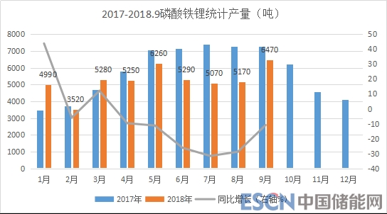 1-9月份磷酸鐵鋰統(tǒng)計(jì)產(chǎn)量4.73萬噸,同比下滑12.2%,9月份以來月產(chǎn)量出現(xiàn)明顯回升;