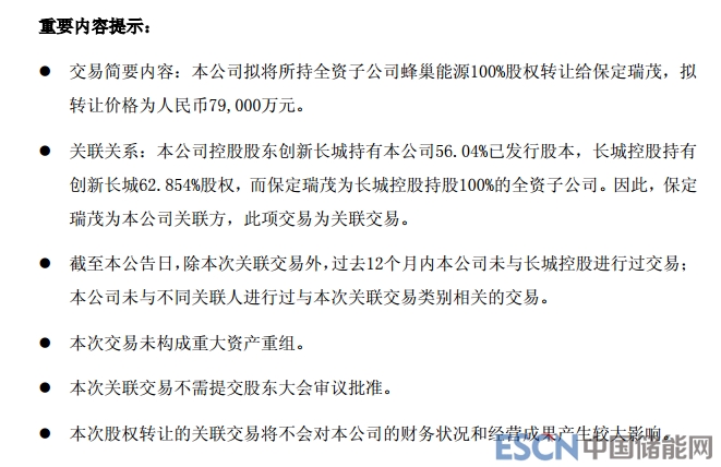 中國儲能網(wǎng)訊:成立于今年2月的蜂巢能源科技有限公司(以下簡稱“蜂巢能源”),被長城汽車以7.9億元價格出售。