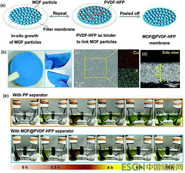 (a)柔性MOF @ PVDF-HFP膜的制造示意圖