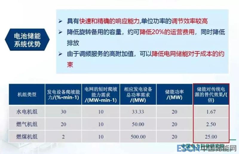 電池儲(chǔ)能具有快速和精確的響應(yīng)能力,單位功率的調(diào)節(jié)效率較高;降低旋轉(zhuǎn)備用的容量,約可降低20%的運(yùn)營(yíng)費(fèi)用,同時(shí)降低排放;由于調(diào)頻服務(wù)的高附加值,可以降低電網(wǎng)儲(chǔ)能對(duì)于成本的約束。以下為電池儲(chǔ)能調(diào)頻優(yōu)勢(shì):