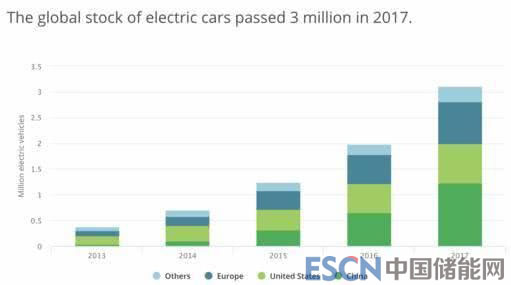 根據(jù)《2018全球電動汽車展望》報告顯示,到2017年為止,全球電動汽車保有量(包括純電動汽車和插電式混合動力汽車)超過300萬輛,相比2016年增長了57%,打破歷史記錄。