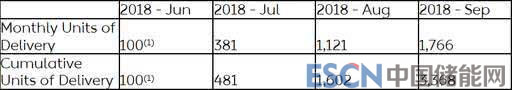 根據(jù)財報內(nèi)容,公司截止9月30日共交付ES8(一款高性能7座SUV)3368輛,其中單9月份ES8的交付量就達(dá)到1766輛,比上月上漲了58%。公司2018年6-9月的交付量分別為100輛、381輛、1121輛和1766輛。