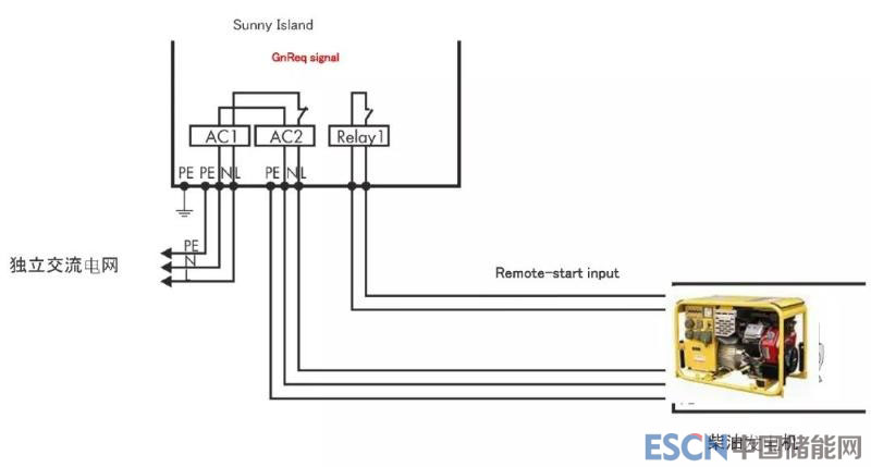 圖7– Sunny Island與柴油發(fā)電機(jī)的電氣連接