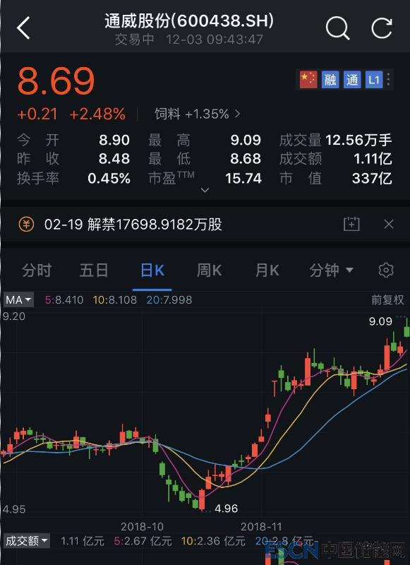 受此消息影響,12月3日晨間,國內(nèi)多家新能源企業(yè)在內(nèi)地、香港資本市場高開高走。截至能源一號發(fā)稿時,尤其引人矚目的是個股為陽光電源、通威股份、保利協(xié)鑫能源、東方日升、中來股份、隆基股份等,股價表現(xiàn)搶眼。此外,協(xié)鑫集成、蘇美達、科士達、京運通、向日葵、亞瑪頓、航天機電等同樣全線高開。