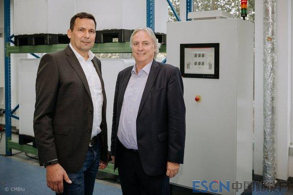 CMBlu公司首席執(zhí)行官彼得-蓋格爾博士(左)與舍弗勒集團(tuán)副首席執(zhí)行官兼首席技術(shù)官彼得-古茲默教授代表雙方公司簽署了大規(guī)模儲能系統(tǒng)開發(fā)的合作協(xié)議。