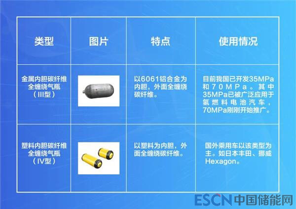 車用高壓氣態(tài)儲(chǔ)氫主要應(yīng)用于車載系統(tǒng),大多使用金屬內(nèi)膽碳纖維全纏繞氣瓶(III型)和塑料內(nèi)膽碳纖維全纏繞氣瓶(IV型)。當(dāng)前,國(guó)內(nèi)車載系統(tǒng)中主要以III型瓶為主,國(guó)內(nèi)有北京科泰克、北京天海、沈陽(yáng)斯林達(dá)、中材、富瑞特裝等多家車用氫瓶生產(chǎn)企業(yè)。