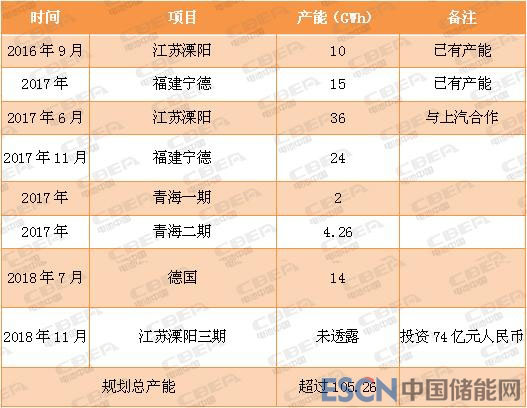 寧德時代現(xiàn)有及規(guī)劃(含在建)產(chǎn)能情況統(tǒng)計