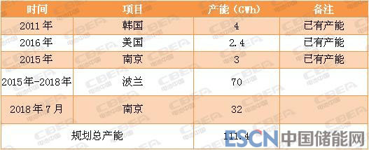LG化學現(xiàn)有及規(guī)劃(含在建)產(chǎn)能情況統(tǒng)計