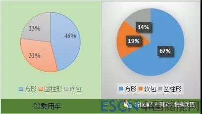 目前,新能源汽車電池形狀類別主要以方形、圓柱形和軟包為主,《研究報告》顯示,純電動車乘用車三元材料動力電池中,方形、圓柱形和軟包形3中形狀的動力電池呈現(xiàn)“三足鼎立”的態(tài)勢:方形占比46%,圓柱形占比31%,軟包23%;而搭載磷酸鐵鋰和錳酸鋰動力電池的新能源乘用車中,方形動力電池數(shù)量占比均高達90%以上(磷酸鐵鋰方形占比93%,錳酸鋰方形占比95%),主要以寧德時代、比亞迪、合肥國軒為主。新能源客車中,搭載方形動力電池占比為67%,軟包形為19%,圓柱形為14%(如圖3所示)。新能源專用車中,三元材料中59%為圓柱形,且以18650電池為主;磷酸鐵鋰電池64%為圓柱形;錳酸鋰電池中方形動力電池占比則高達87%??梢钥闯?,目前方形動力電池已成為新能源汽車推廣市場動力搭載的主流,尤其是伴隨著寧德時代、比亞迪等核心龍頭產(chǎn)業(yè)的不斷擴產(chǎn),動力電池國家統(tǒng)一標(biāo)準(zhǔn)呼聲的逐步高漲,方形動力電池可以說是大勢所趨。