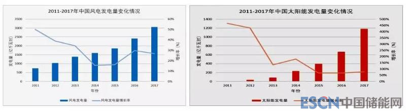 △2011——2017年中國(guó)風(fēng)電、太陽(yáng)能發(fā)電量變化情況