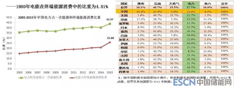 注:電力轉(zhuǎn)化能源占一次能源比重依據(jù)中電聯(lián)《電力工業(yè)統(tǒng)計(jì)資料提要2016》和國(guó)家統(tǒng)計(jì)局《中國(guó)能源統(tǒng)計(jì)年鑒2016》采用發(fā)電煤耗計(jì)算法計(jì)算得出;電能占終端能源消費(fèi)比重采用《中國(guó)能源統(tǒng)計(jì)年鑒》數(shù)據(jù)計(jì)算得出。中國(guó)現(xiàn)行能源平衡定義、方法和指標(biāo)設(shè)置與國(guó)際通行準(zhǔn)則存在差異,但趨勢(shì)判斷不受影響 。