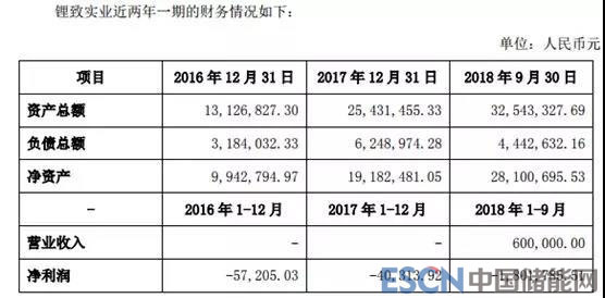 資料顯示,鋰致實業(yè)2016-2017年都沒有收入,2018年1-9月僅營收60萬元,并連續(xù)三年處于凈利潤虧損狀態(tài),三年累計虧損189.9萬元。