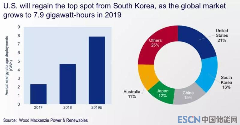 預(yù)測(cè)五:美國(guó)在2018年失去全球最大儲(chǔ)能市場(chǎng)的地位,但將在2019年重新獲得這一地位