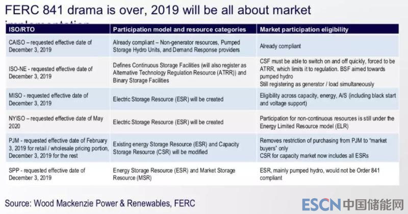 隨著電網(wǎng)運(yùn)營(yíng)商近日向美國(guó)聯(lián)邦能源監(jiān)管委員會(huì)(FERC)提交了正式的841訂單合規(guī)計(jì)劃,現(xiàn)在可以更加全面地了解每個(gè)電網(wǎng)運(yùn)營(yíng)商的實(shí)施和發(fā)展計(jì)劃。雖然美國(guó)儲(chǔ)能聯(lián)盟(ESA)確實(shí)對(duì)這些最終計(jì)劃表示不滿,表明未來對(duì)此還有更多的爭(zhēng)論,但2018年開放的841號(hào)訂單強(qiáng)制性市場(chǎng)的變化仍有望為批發(fā)能源和輔助服務(wù)市場(chǎng)提供大量新的機(jī)會(huì)。