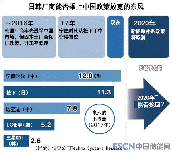 中國(guó)儲(chǔ)能網(wǎng)訊:據(jù)根據(jù)《日經(jīng)中文網(wǎng)》25日?qǐng)?bào)道,伴隨著中國(guó)政府放寬純電動(dòng)汽車等新能源車的限制,出臺(tái)了吸引外資、促進(jìn)新能源車普及的政策,日韓廠商基于對(duì)未來(lái)訂單增量的預(yù)期,紛紛計(jì)劃擴(kuò)增中國(guó)車用電池產(chǎn)能,借此搶占市場(chǎng)。未來(lái),中日韓三國(guó)車載電池生產(chǎn)廠商在中國(guó)市場(chǎng)上的競(jìng)爭(zhēng)將日趨激烈。