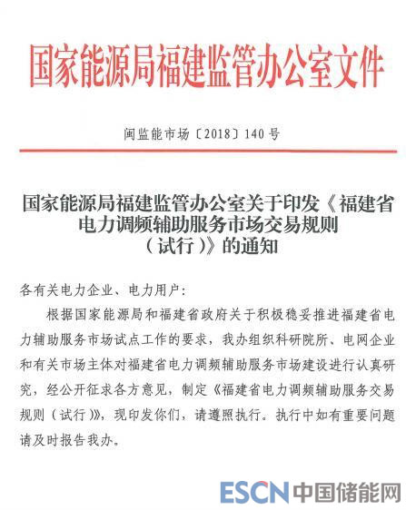 福建能監(jiān)辦日前發(fā)布了《關(guān)于福建省電力調(diào)頻輔助服務(wù)市場(chǎng)啟動(dòng)運(yùn)行有關(guān)工作的通知(閩監(jiān)能市場(chǎng)〔2018〕139號(hào))》、關(guān)于印發(fā)《福建省電力調(diào)頻輔助服務(wù)市場(chǎng)交易規(guī)則(試行)》的通知(閩監(jiān)能市場(chǎng)〔2018〕140號(hào)),定于2018年12月18日起福建電力調(diào)頻輔助服務(wù)市場(chǎng)啟動(dòng)模擬測(cè)試運(yùn)行。2018年12月18日至2019年3月17日為模擬測(cè)試運(yùn)行,期間調(diào)頻補(bǔ)償與分?jǐn)傎M(fèi)用仍按原有華東區(qū)域“兩個(gè)細(xì)則”進(jìn)行結(jié)算;2019年3月18日至2019年9月17日為試運(yùn)行期,期間調(diào)頻市場(chǎng)補(bǔ)償與分?jǐn)傎M(fèi)用按福建省電力調(diào)頻輔助服務(wù)市場(chǎng)規(guī)則進(jìn)行結(jié)算,結(jié)算費(fèi)用減半執(zhí)行;試運(yùn)行期結(jié)束后,根據(jù)實(shí)際情況擇機(jī)轉(zhuǎn)入正式運(yùn)行。