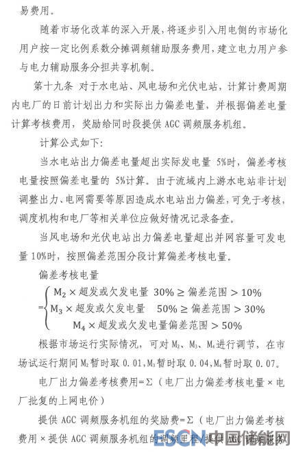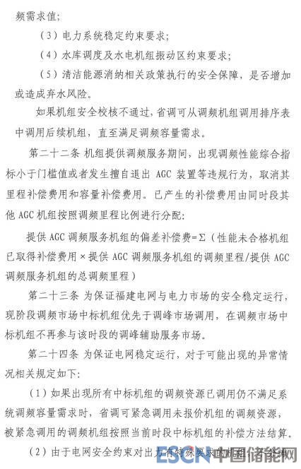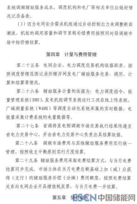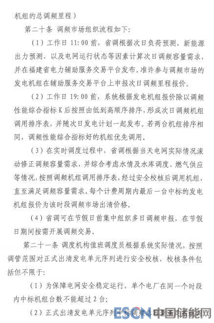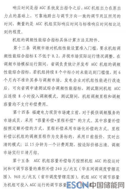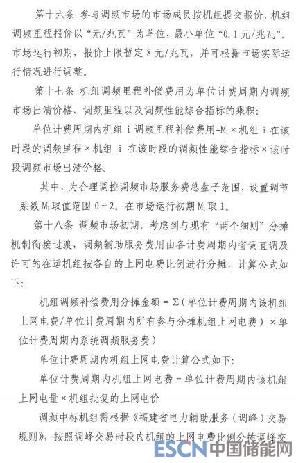 交易規(guī)則明確儲(chǔ)能等輔助服務(wù)提供商可作為市場(chǎng)主體參與電力輔助調(diào)頻,暫定儲(chǔ)能設(shè)備、儲(chǔ)能電站容量不少于一萬(wàn)千瓦,并參照常規(guī)機(jī)組標(biāo)準(zhǔn)參與調(diào)頻市場(chǎng),以15分鐘為一個(gè)計(jì)費(fèi)周期,按邊際價(jià)格出清,報(bào)價(jià)最小單位為0.1元/MW,上限8元/MW,現(xiàn)階段調(diào)頻市場(chǎng)中標(biāo)機(jī)組優(yōu)先于調(diào)峰市場(chǎng)調(diào)用,在調(diào)頻市場(chǎng)中標(biāo)機(jī)組不再參與該時(shí)段的調(diào)峰輔助服務(wù)市場(chǎng)。交易規(guī)則還規(guī)定,采用“容量補(bǔ)償+里程補(bǔ)償”的方式,每月按照機(jī)組AGC的投運(yùn)時(shí)間和可調(diào)節(jié)容量的乘積補(bǔ)償240元/兆瓦(華東網(wǎng)調(diào)調(diào)度管轄范圍)、960元/兆瓦(省市調(diào)度管轄范圍)。