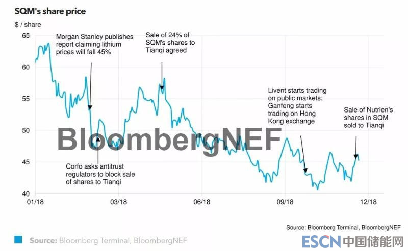 收購(gòu)將以5月份達(dá)成的65美元/股的價(jià)格進(jìn)行最終交易。由于對(duì)鋰市場(chǎng)供過(guò)于求的擔(dān)憂(yōu),SQM的股票在12月3日跌至46美元/股,比發(fā)行價(jià)低了29%。盡管股價(jià)下跌,但是SQM的股息在過(guò)去5年中增長(zhǎng)了11%,因此天齊鋰業(yè)仍然可以通過(guò)鋰需求增加帶來(lái)的高股息而獲益。