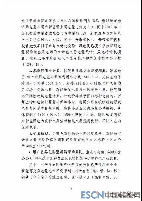 《意見(jiàn)》重點(diǎn)關(guān)注了新能源發(fā)電情況。指出,蒙東地區(qū)按照用戶(hù)類(lèi)別確定新能源交易比例,用戶(hù)按照配置比例分別與火電機(jī)組和新能源機(jī)組交易;2019年按照新能源發(fā)電占區(qū)內(nèi)市場(chǎng)化交易電量30%左右參與市場(chǎng)化交易;新能源市場(chǎng)化電量交易價(jià)格區(qū)間暫定為蒙東地區(qū)火電標(biāo)桿上網(wǎng)電價(jià)的40%至55%之間。
