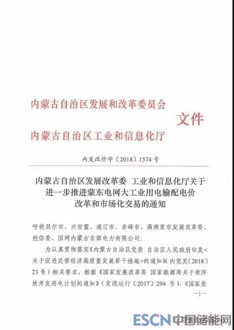 另外,《內(nèi)蒙古自治區(qū)發(fā)展改革委 內(nèi)蒙古自治區(qū)工信廳關(guān)于進(jìn)一步推進(jìn)蒙東電網(wǎng)大工業(yè)用電輸配電價(jià)改革和市場(chǎng)化交易的通知》也于同日下發(fā),規(guī)定自2019年1月1日起蒙東地區(qū)大工業(yè)用電全部進(jìn)入電力交易市場(chǎng),停止執(zhí)行蒙東電網(wǎng)大工業(yè)目錄銷(xiāo)售電價(jià)。