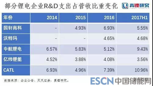 科技部的數(shù)據(jù)顯示,2017年全社會(huì)R&D支出(研發(fā)投入)大約1.76萬(wàn)億元,占GDP比重為2.15%,超過(guò)歐盟15國(guó)2.1%的平均水平。真鋰研究的跟蹤顯示,2017年鋰電產(chǎn)業(yè)鏈主要企業(yè)的R&D支出占企業(yè)營(yíng)收的比重,多數(shù)達(dá)到了4%以上的高水平。中國(guó)最大的鋰離子電池企業(yè)CATL的招股說(shuō)明書(shū)顯示,該企業(yè)2017年上半年的R&D支出甚至占到其當(dāng)期營(yíng)收的10%以上,對(duì)應(yīng)的研發(fā)團(tuán)隊(duì)人數(shù)高達(dá)3628人,大部分是碩士和博士學(xué)歷。高研發(fā)投入帶來(lái)的直接結(jié)果就是中國(guó)鋰電產(chǎn)業(yè)的快速進(jìn)步,中國(guó)企業(yè)在全球市場(chǎng)攻城略地,其中CATL的能力已經(jīng)獲得了歐洲車(chē)企巨頭們的廣泛認(rèn)可,寶馬、雷諾、大眾、奔馳等LG化學(xué)和三星SDI的主要客戶(hù)已經(jīng)紛紛與CATL簽署了巨額電池采購(gòu)訂單??梢灶A(yù)見(jiàn),在中國(guó)政府持續(xù)不斷的政策推動(dòng)下,中國(guó)鋰電產(chǎn)業(yè)鏈的技術(shù)密集型特點(diǎn)會(huì)日益強(qiáng)化。