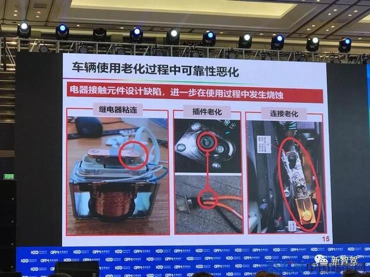 車輛使用過(guò)程中可靠性降低,全生命周期中防水效果不佳。通常電池的密封性要通過(guò)IP67標(biāo)準(zhǔn),但車輛長(zhǎng)時(shí)間使用后,密封性變差,車輛進(jìn)水,造成短路。另一方面,電池激光焊接的接頭內(nèi)部易出現(xiàn)空隙,導(dǎo)致阻抗增加,進(jìn)而發(fā)熱產(chǎn)生高溫點(diǎn),最終引起熱失控。還包括電池系統(tǒng)和充電機(jī)高壓電器老化,充電時(shí)接觸器經(jīng)常開(kāi)斷,造成接觸器表面高溫?zé)龘p或者粘連。