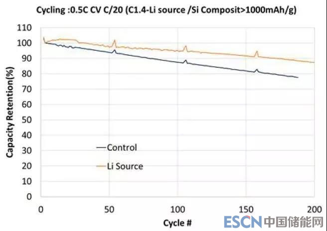 通過(guò)預(yù)鋰工藝,可以大大改善硅負(fù)極的循環(huán)性能(見(jiàn)下圖)。項(xiàng)目最終電池的容量為60Ah。