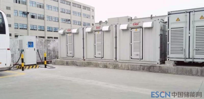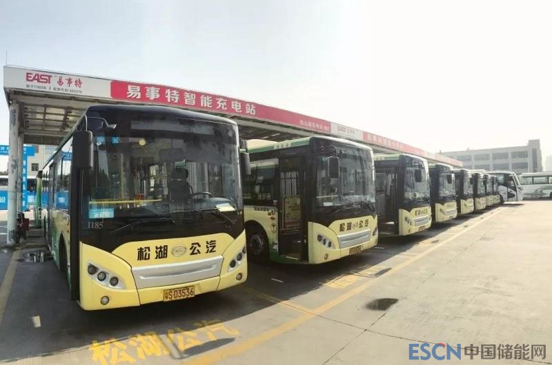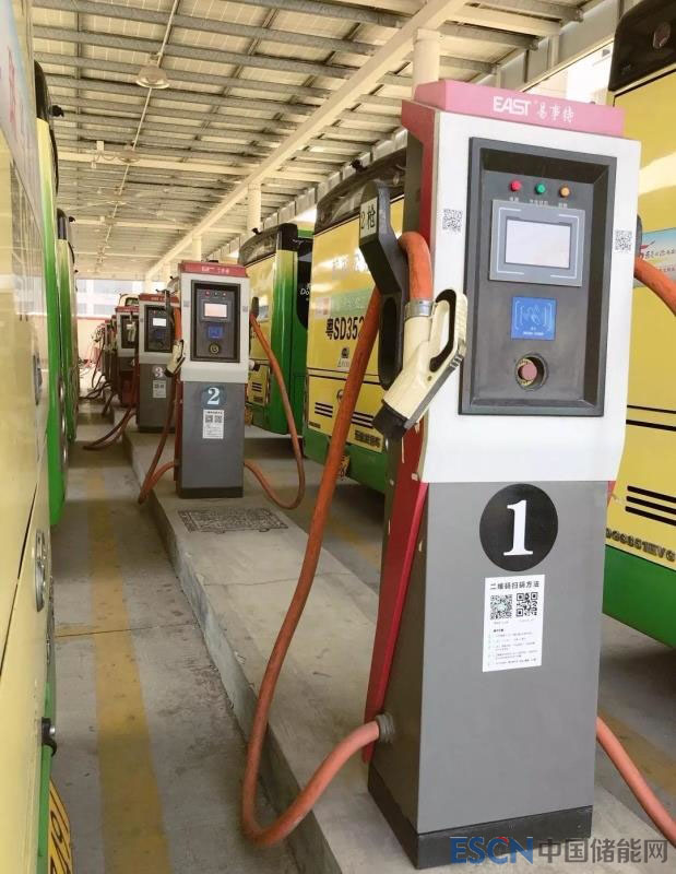 停車棚頂為光伏,儲(chǔ)存的能量給充電樁為電動(dòng)公交車充電