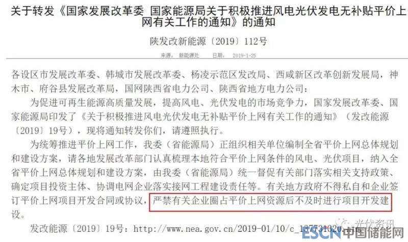 為統(tǒng)籌推進(jìn)平價(jià)上網(wǎng)工作,我委(省能源局)正組織相關(guān)單位編制全省平價(jià)上網(wǎng)總體規(guī)劃和建設(shè)方案,請(qǐng)各地發(fā)展改革部門認(rèn)真梳理本地符合平價(jià)上網(wǎng)條件的風(fēng)電、光伏項(xiàng)目,納入全省平價(jià)上網(wǎng)總體規(guī)劃和建設(shè)方案,由我委(省能源局)統(tǒng)一督促有關(guān)部門落實(shí)相關(guān)支持政策、確定項(xiàng)目投資主體、協(xié)調(diào)電網(wǎng)企業(yè)落實(shí)接網(wǎng)工程建設(shè)責(zé)任等。有關(guān)地方政府不得私自和企業(yè)簽訂平價(jià)上網(wǎng)項(xiàng)目開發(fā)合同或協(xié)議,嚴(yán)禁有關(guān)企業(yè)圈占平價(jià)上網(wǎng)資源后不及時(shí)進(jìn)行項(xiàng)目開發(fā)建設(shè)。